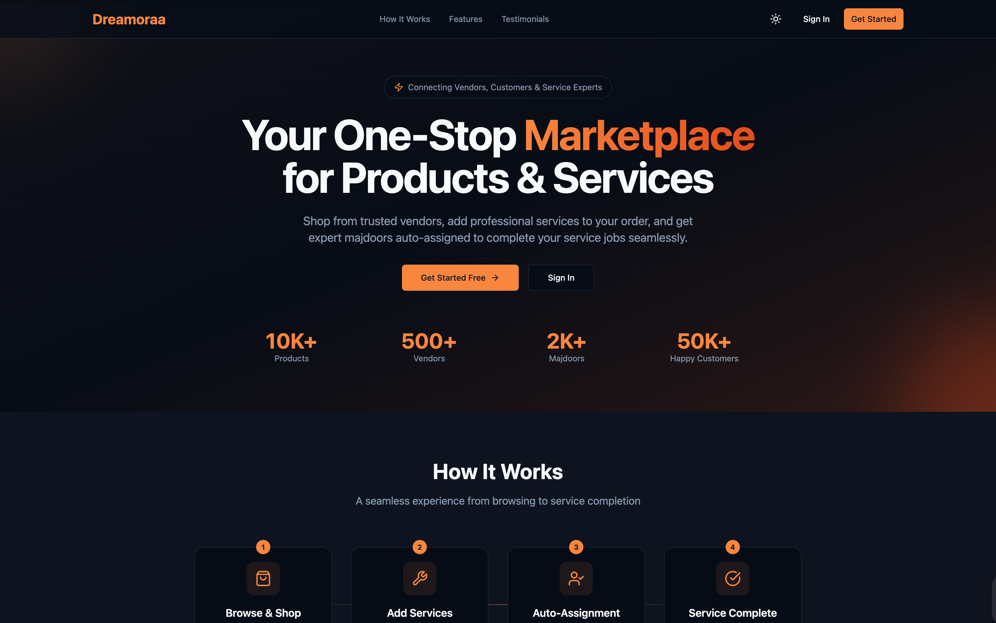 This marketplace platform revolutionizes how customers connect with service providers and purchase related products. The platform enables vendors to create detailed profiles, list their services, and manage their product catalogs all in one place.